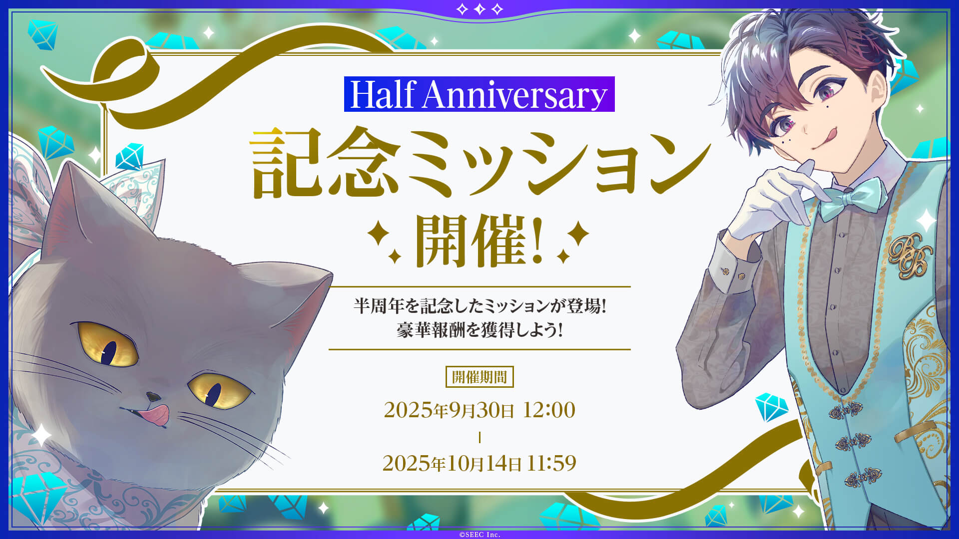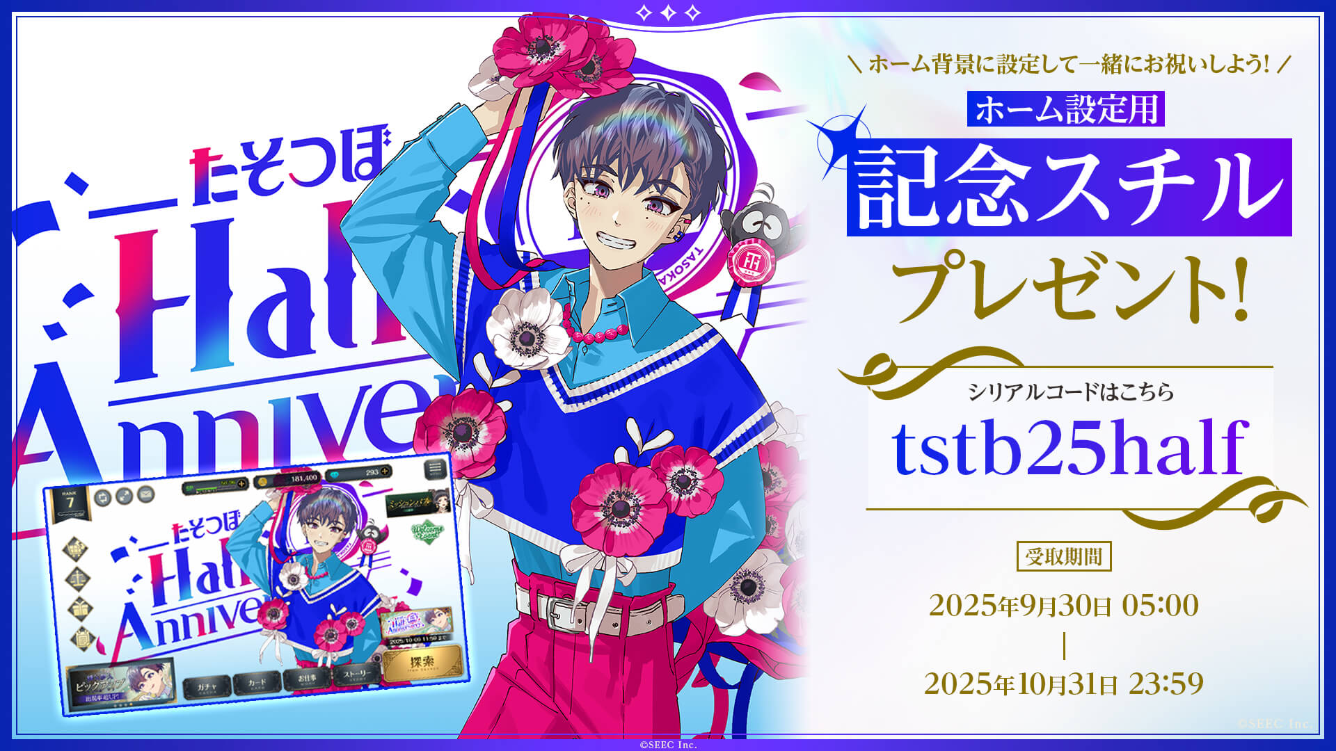 下記のシリアルコードを入力して、《Half Anniversary記念描き下ろしSPスチル》をゲットしよう!