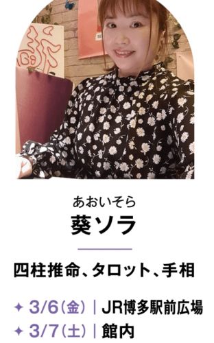 また、葵ソラが定期的に出演している「イベント占い」はどの世代のお客様も楽しんで頂いております。