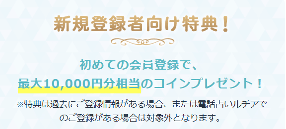 初回の新規登録3,000円分のコインの利用で、1分200円の占い師なら最大15分の電話占いが無料です。